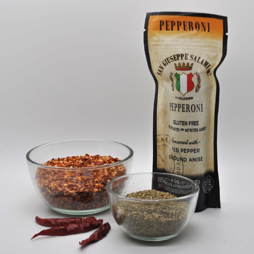 This is not generic, blah-blah pepperoni. It’s full of spicy flavor, crafted with a secret blend of ground anise, red pepper flakes and more.